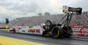 As Richie Crampton sat in his Lucas Oil Top Fuel dragster awaiting his turn to run down Brainerd International Raceway, he was dreaming big as car after car posted big numbers on the scoreboards. But when he finally got a chance to race good friend JR Todd towards the end of the first round, his dream of a second straight Brainerd title was lost in a cloud of tyre smoke.