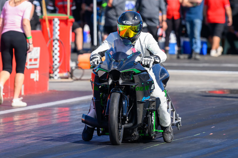 During Sunday’s racing, winner Mallis reset two competition bike DD/CB records from ET 7.793secs to ET 7.627secs and TS 178.52mph to TS 178.64mph.