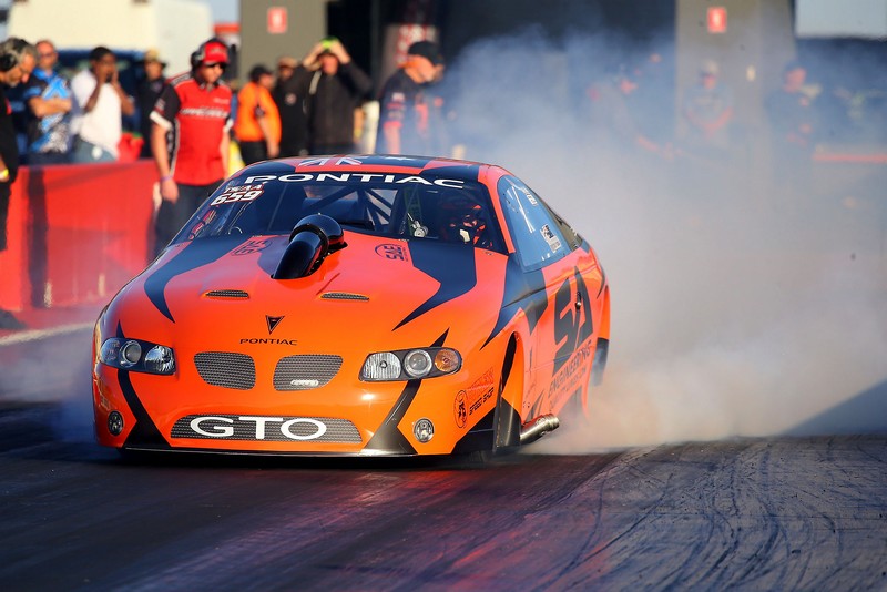 In Top Doorslammer, John Zappia top qualified ahead of Daniel Gregorini following the completion of three qualifying rounds. Zappia led the way through all of today’s close-running qualifying sessions, first with a 5.6719 second 407.51kph pass against Russell Taylor, before holding on to the spot by just .00001 of a second while sitting out Q2 when Russell Taylor ran a 5.6719 second pass at 414.116398kph.